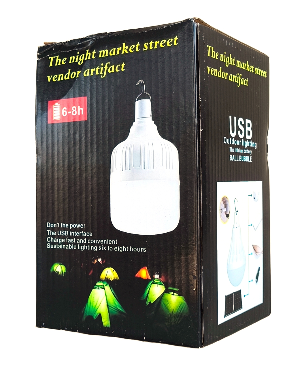 Кампінгова лампа, 50Вт, акумуляторна, з USB зарядкою і гачкомЦя зручна і компактна кемпінгова лампа