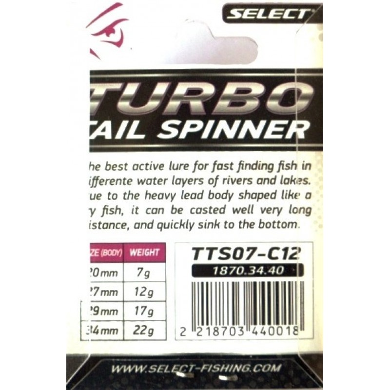 Придбайте блешню Тейл-спіннер Select Turbo за привабливою ціною у компанії Снасті оптом. Насолоджуйтесь уловом та приємним проведенням часу на риболовлі з цим надійним товаром.