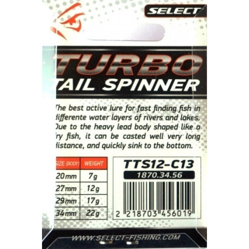 Тейл-спіннер Select Turbo – надійний помічник на будь-якому рибальському заході. Його привабливий дизайн та відмінні характеристики роблять його незамінним аксесуаром для успішного лову.