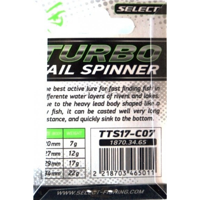 Блешня Тейл-спіннер Select Turbo має відмінну керованість і привабливий рух під водою, що робить її неперевершеною у лові різних видів риби.