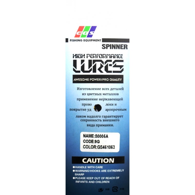 Рибальська блешня EOS S0005А - чудовий вибір для любителів риболовлі. Її механізм, що обертається, і привабливий колір GS461063 привертають увагу хижої риби, забезпечуючи успішний улов.