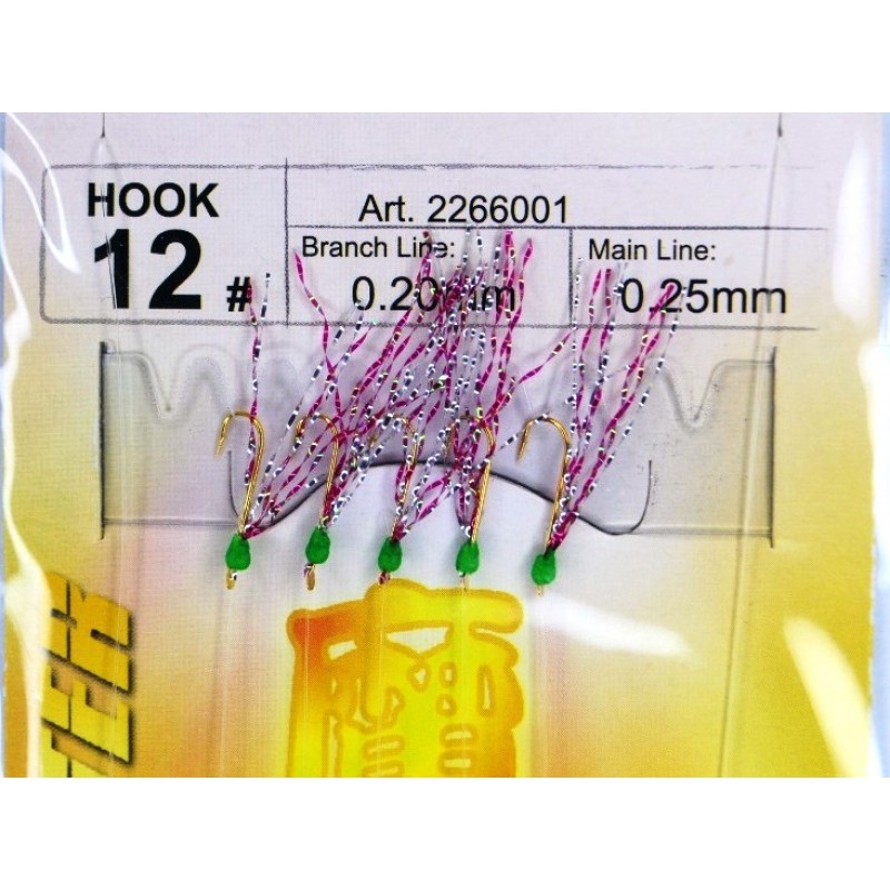 Снасть самодур EOS 2266001 оснащена 5 міцними гачками, які забезпечують надійне утримання спійманої риби. Її зручний розмір №12 робить її ідеальним вибором для любителів риболовлі.