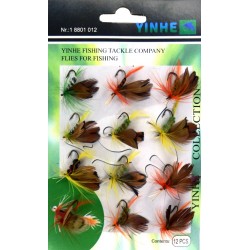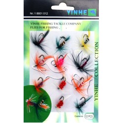 Yinhe-01 - це набір мушок, призначених для лову риби. У упаковці міститься 12 мушок, кожна з яких ре