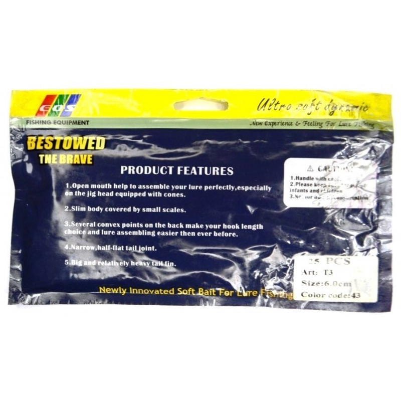 Представляємо вам силіконову приманку на хижу рибу EOS T3. Ці приманки виготовлені із високоякісного силікону та мають довжину 60 мм. В упаковці міститься 25 штук, що дозволяє вам довго насолоджуватися вдалою рибалкою без необхідності постійної покупки нових приманок.