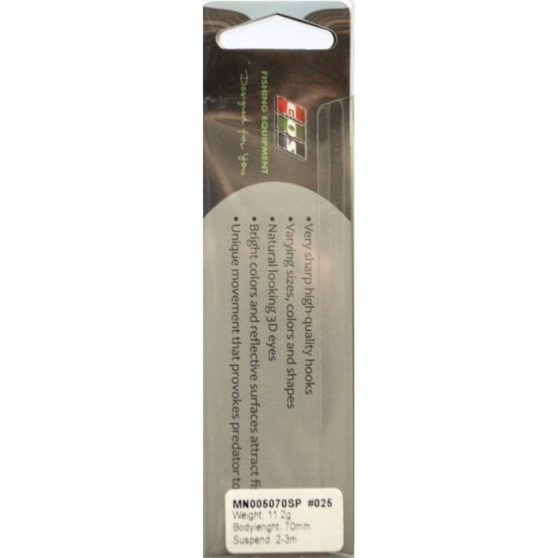 З розмірами 70мм та вагою 11,2г цей воблер ідеально підходить для привернення уваги риби різних розмірів. Його здатність занурюватися на глибину від 2,0м до 3,0м робить його незамінним засобом для лову в різних умовах водойм.