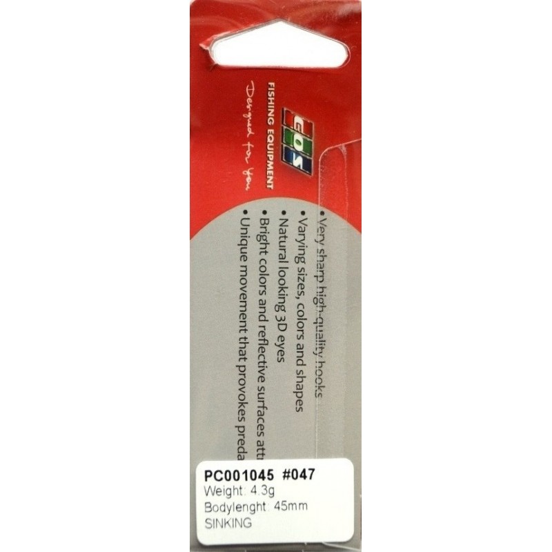 З розмірами 45мм та вагою 4,3г, цей воблер ідеально підходить для роботи на неглибоких водоймах до глибини 1м. Його компактний розмір і легка вага роблять його зручним у використанні навіть для рибалок-початківців.